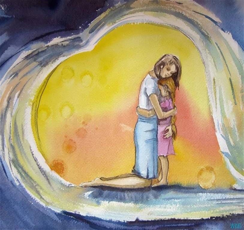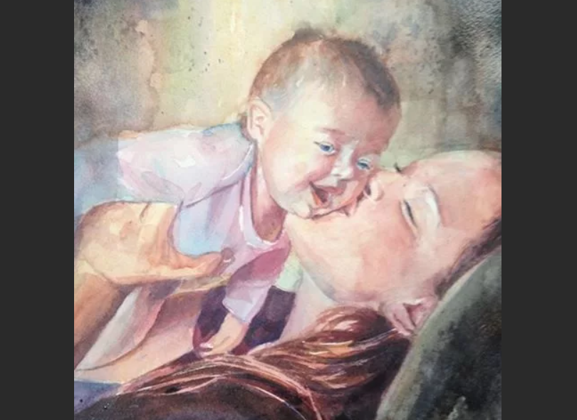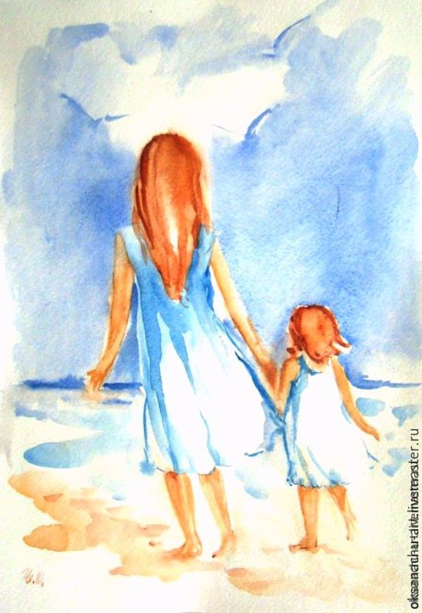 ![Мама с ребенком акварель]()