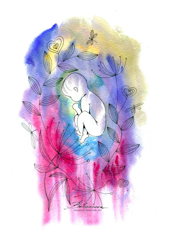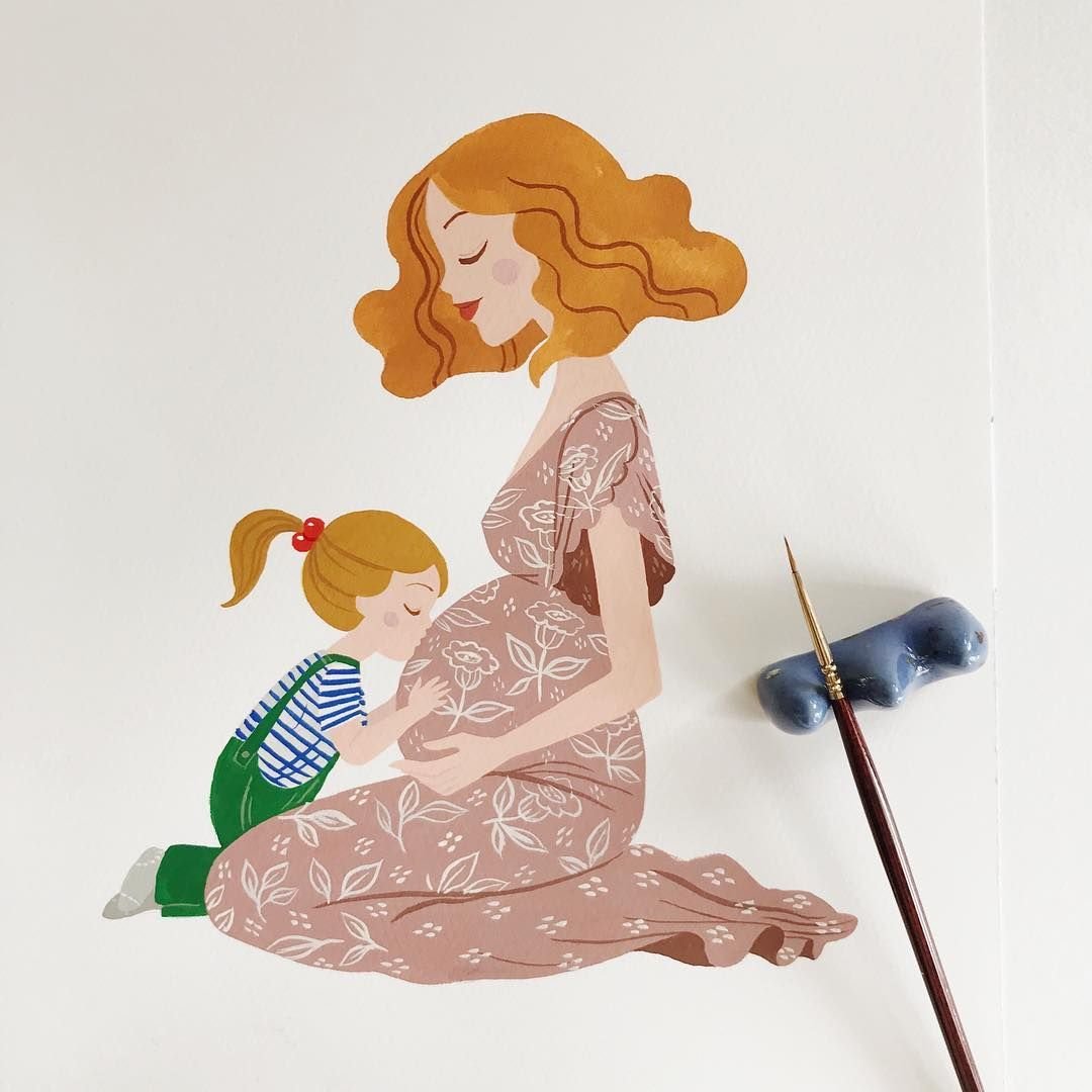 ![Беременная рисунок акварелью]()
