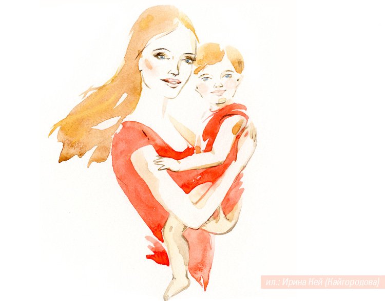 ![Акварельные иллюстрации мама и малыш]()