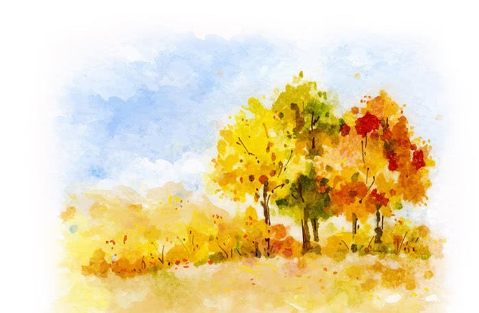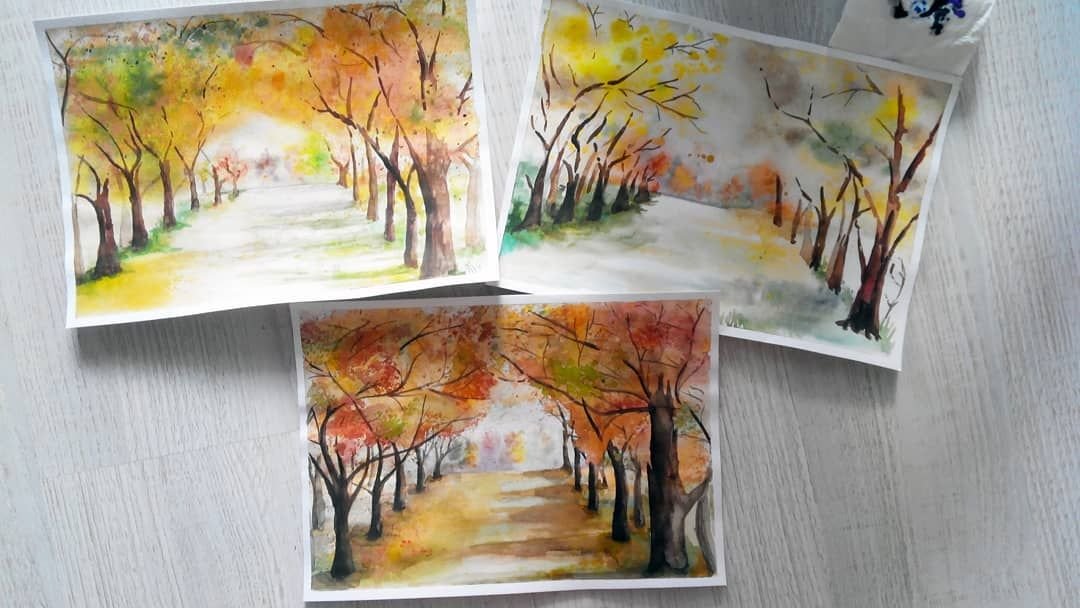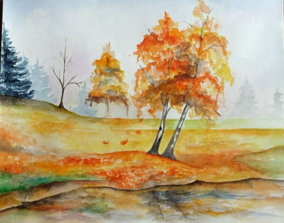 Рисование осеннего пейзажа акварелью