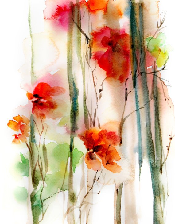 ![Абстрактные цветы акварелью]()