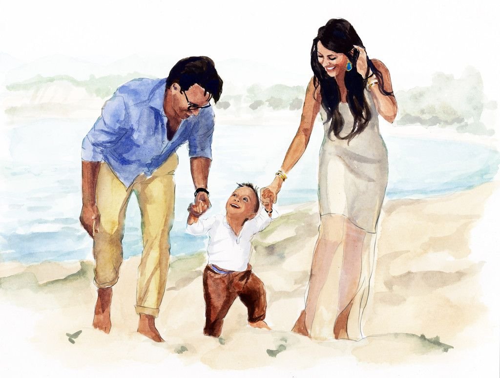 Акварельные зарисовки семья