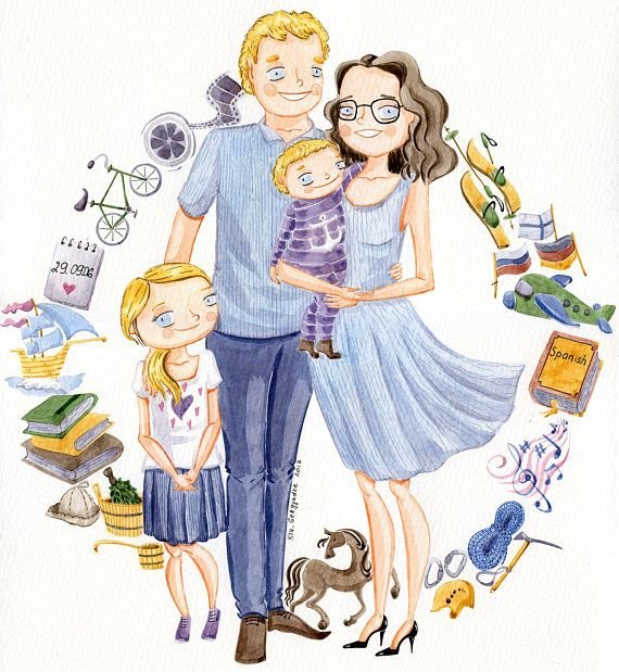 ![Семейная картина акварель]()