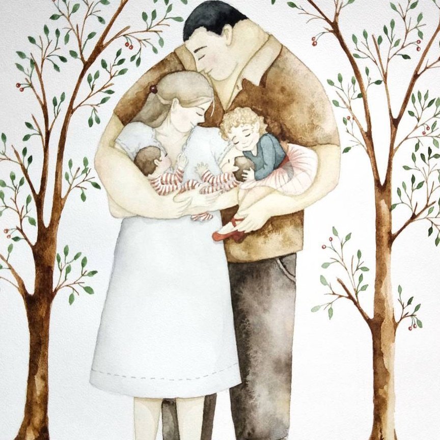 ![Семейные Акварельные иллюстрации]()