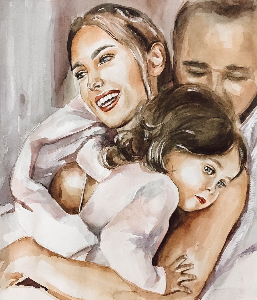 Счастливая семья акварель
