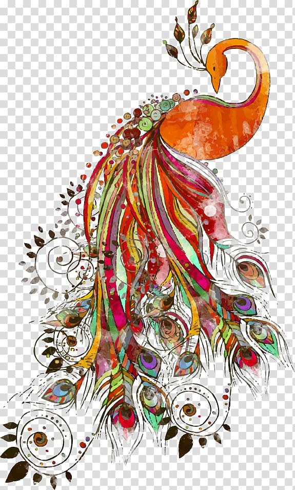 ![Павлин акварелью]()