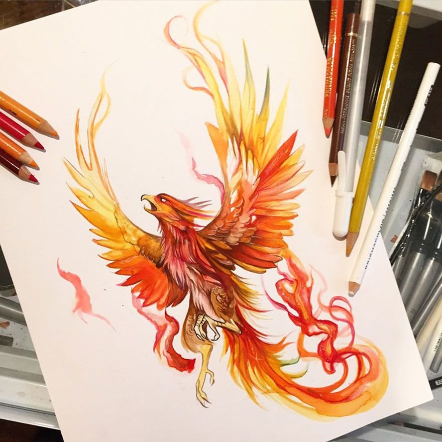 ![Феникс в акварельном стиле]()