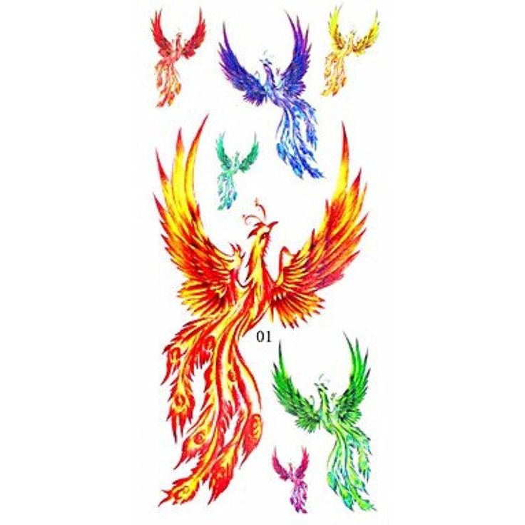 Птица Феникс тату эскизы цветные