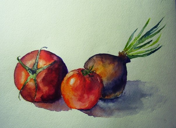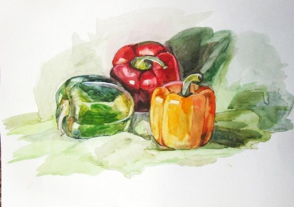 ![Этюд овощей акварелью]()