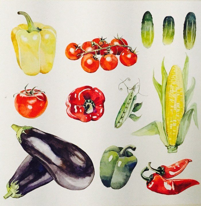 ![Овощи акварелью]()