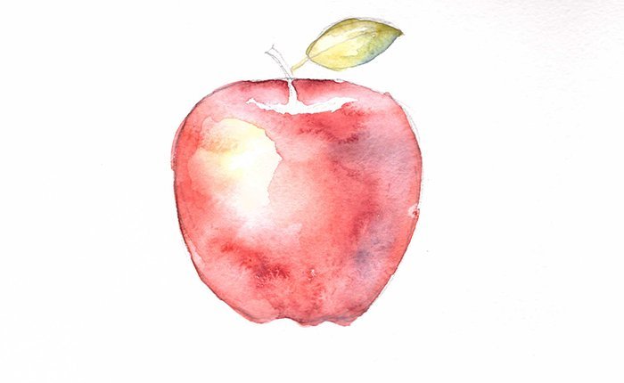 Яблоко акварелью для начинающих