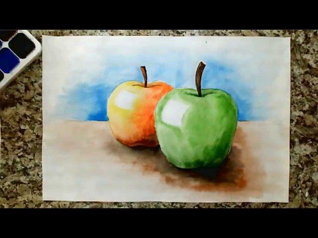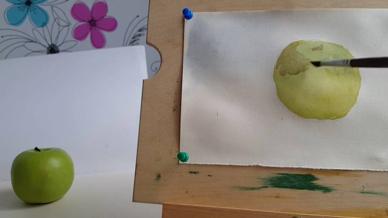 Яблоко акварелью лессировка для начинающих