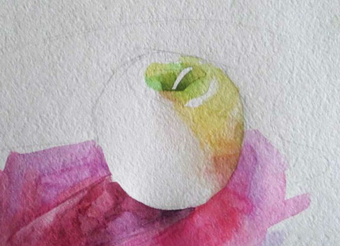 Яблоко акварелью лессировка
