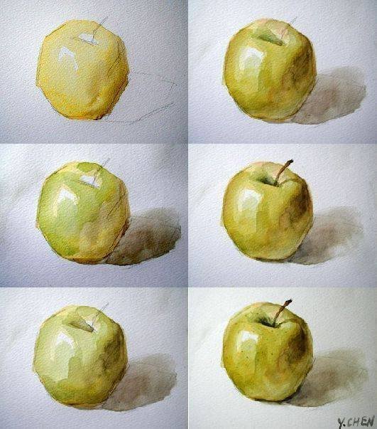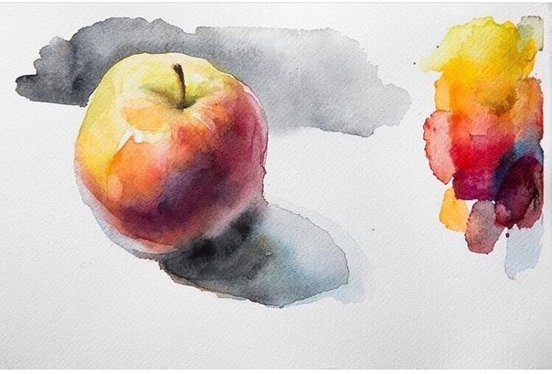![Этюд яблока акварелью лессировка]()