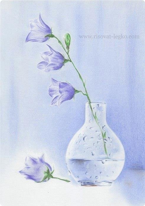 ![Натюрморт цветок в вазе цветным карандашом]()