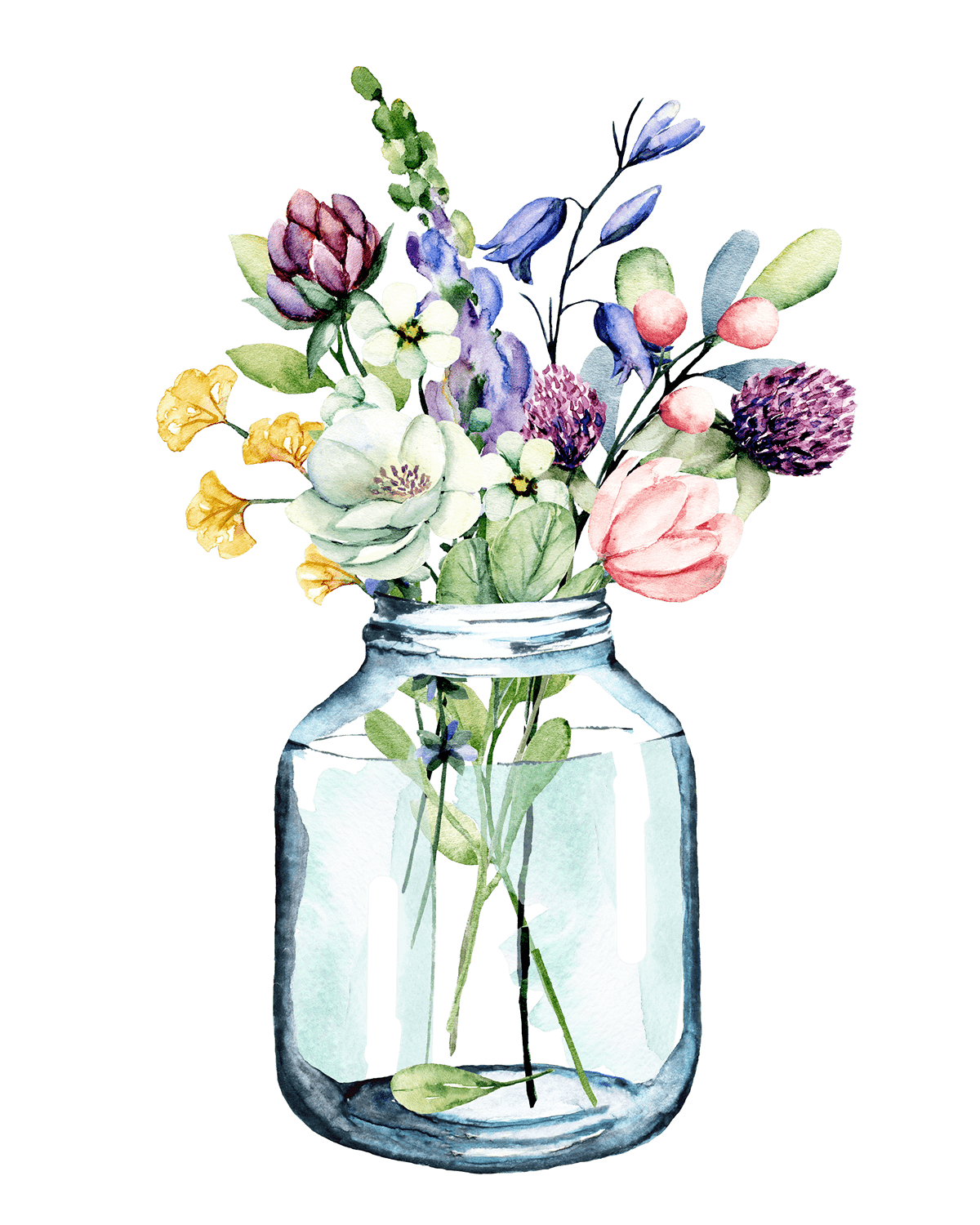 Акварельные цветы в банке