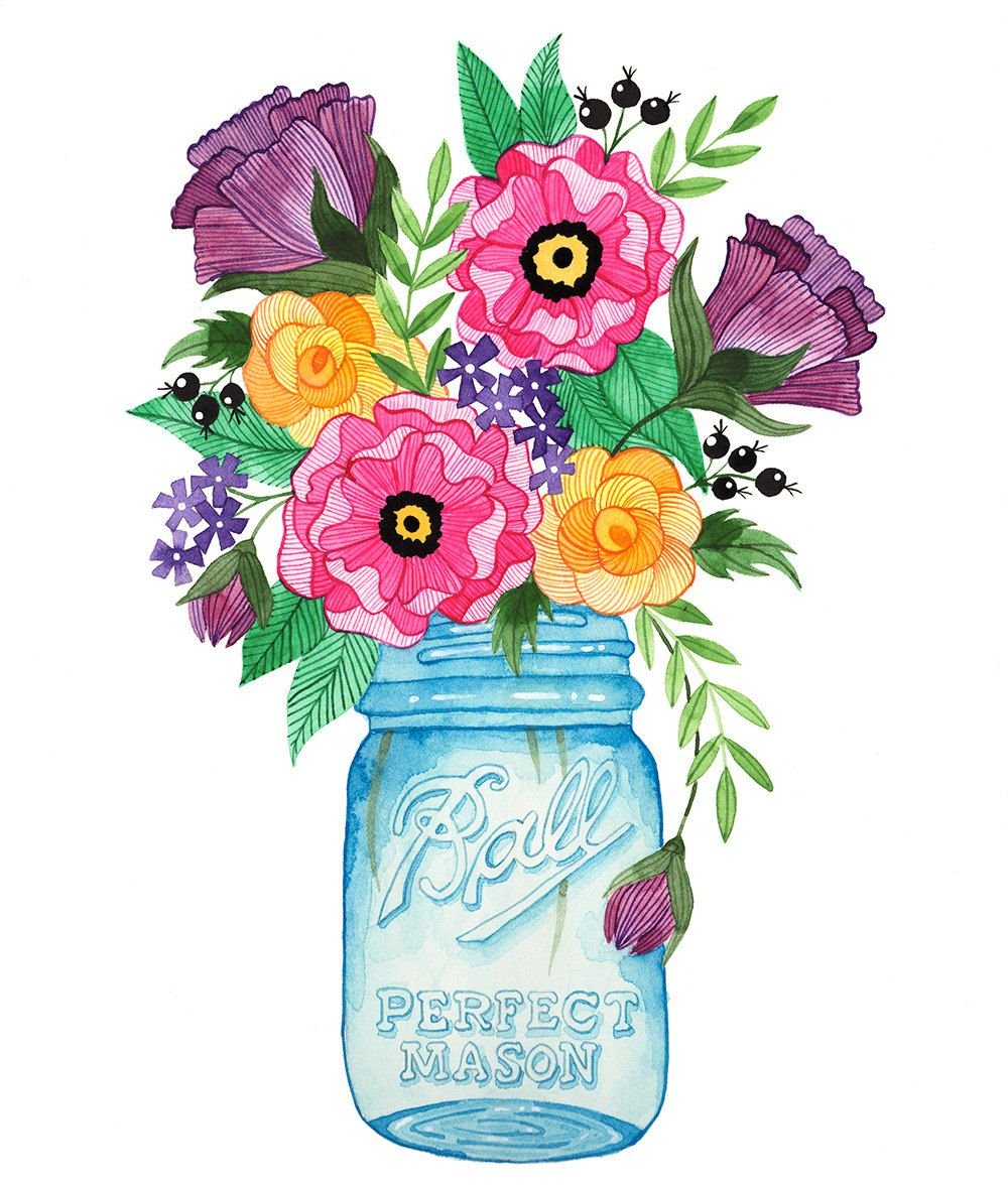 ![Акварельные цветы в банке]()