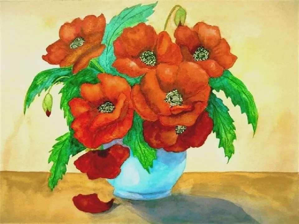 ![Маки в вазе рисунок]()