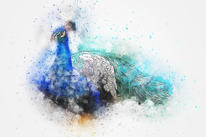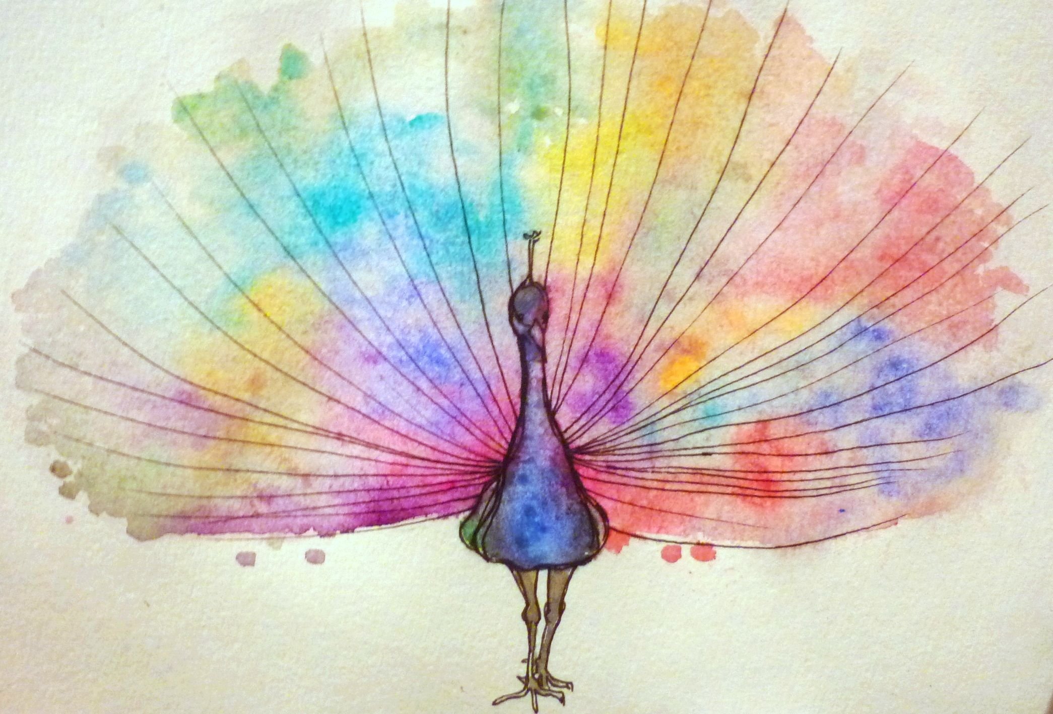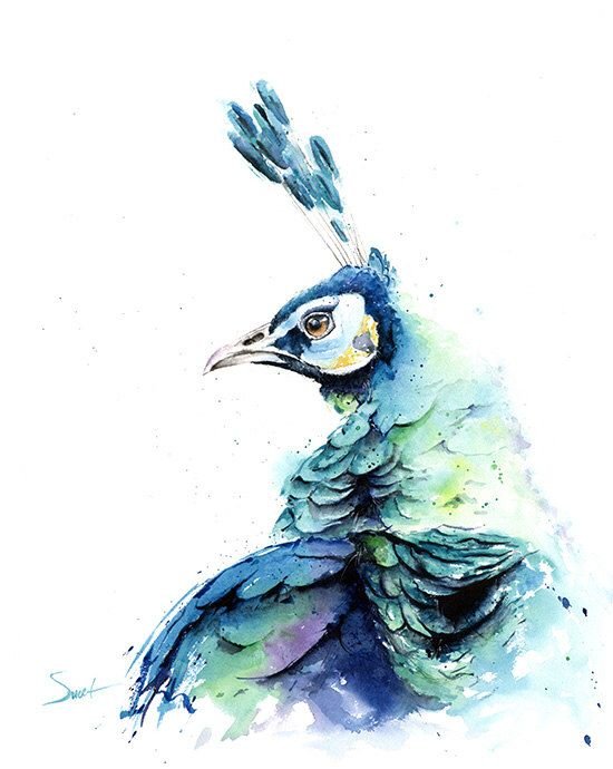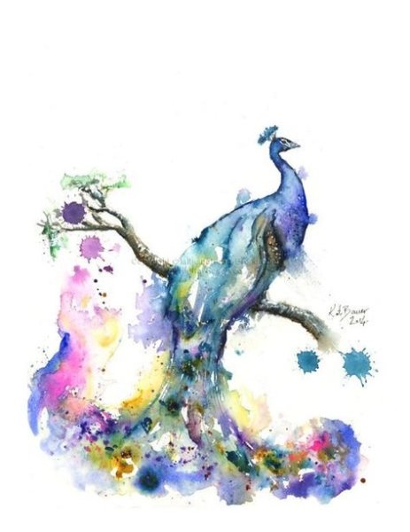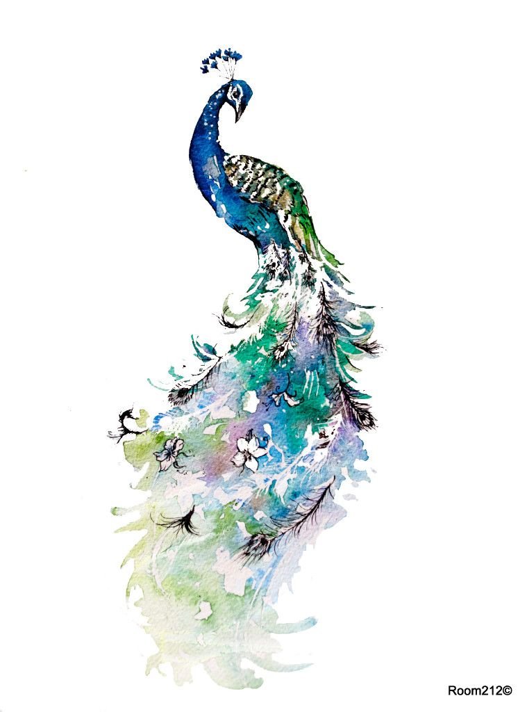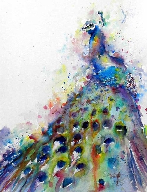 ![Павлин акварелью]()