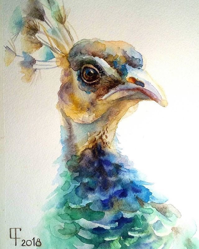 ![Акварель павлина куаркова]()