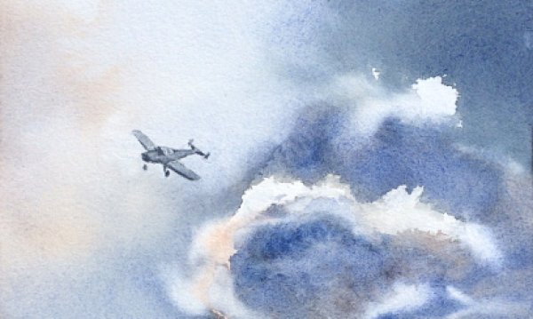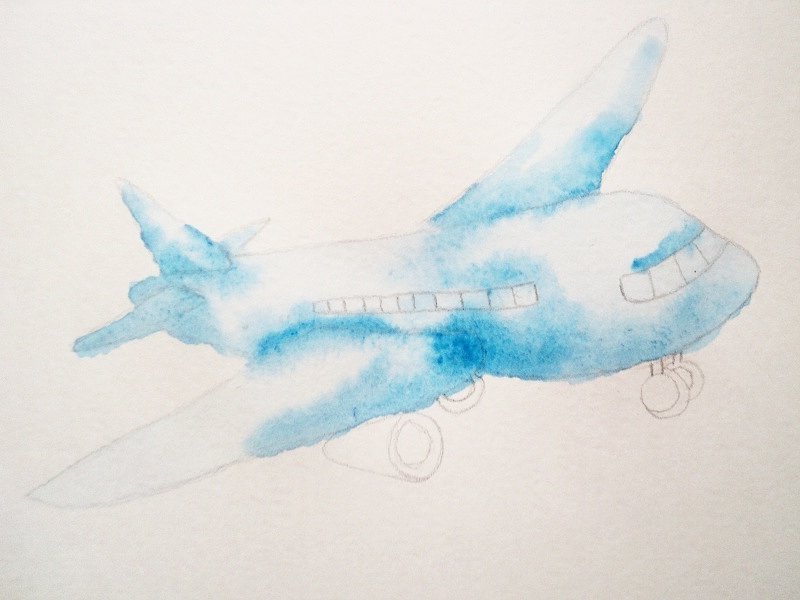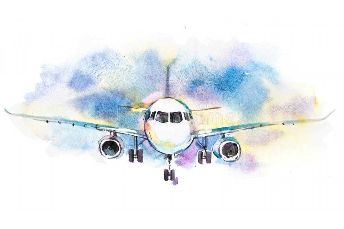 ![Самолет нарисованный акварелью]()