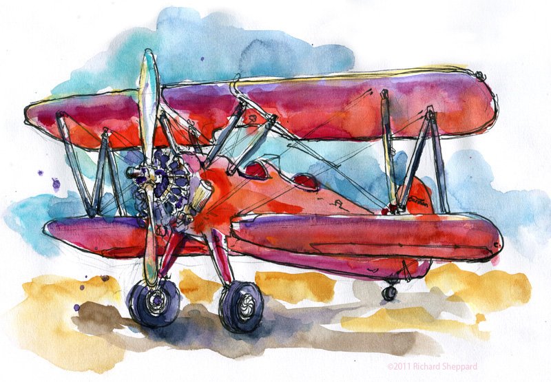 Аэроплан акварель