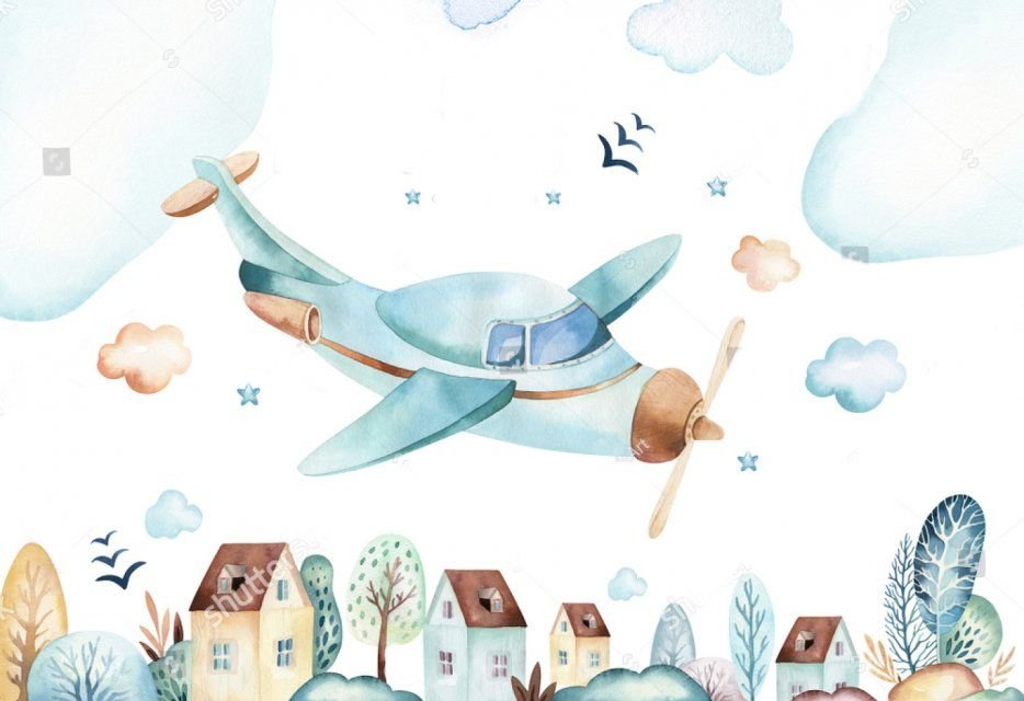 ![Акварельный самолет]()