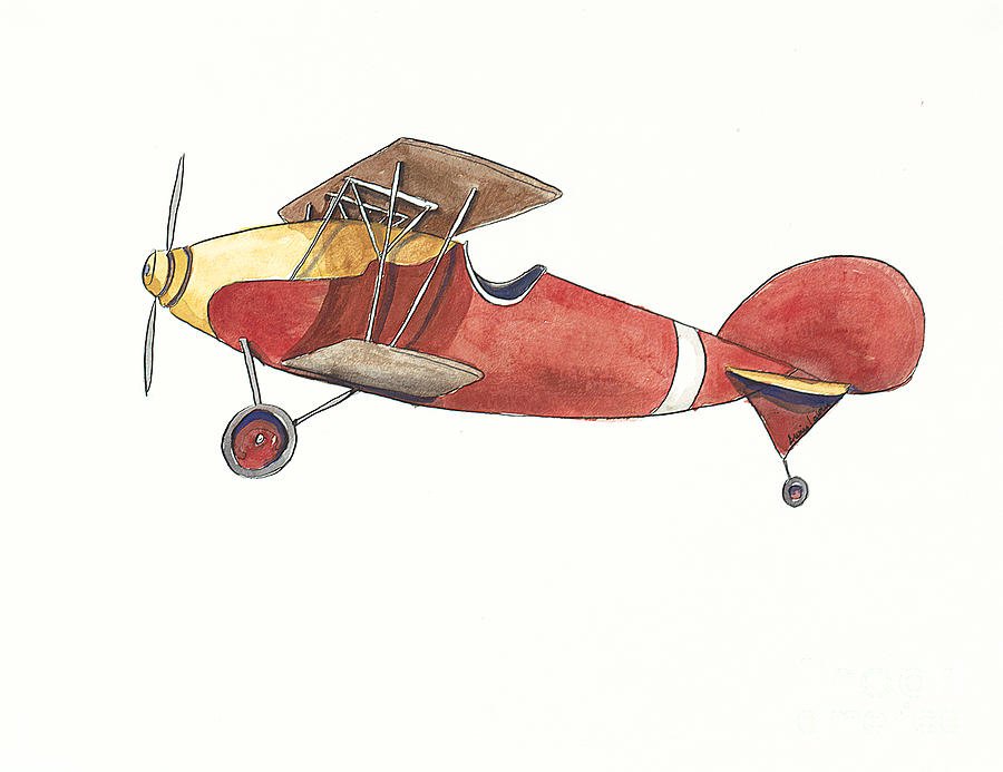 Самолет нарисованный акварелью