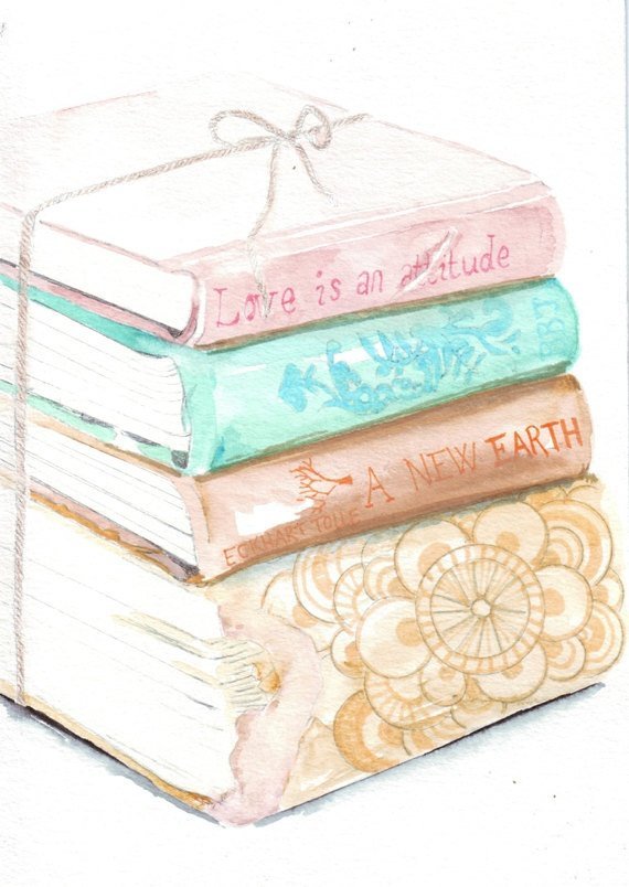 Книги акварелью рисунок