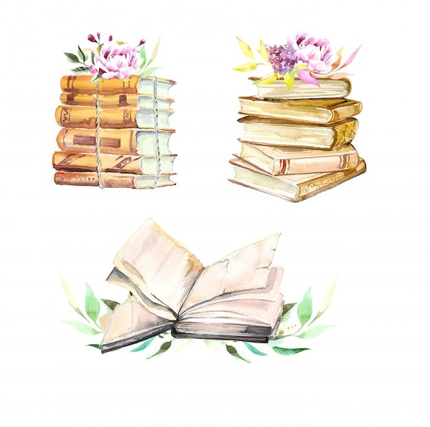 ![Стопка книг акварель]()