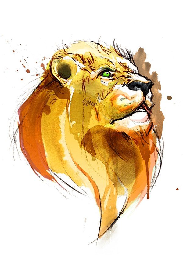 Акварельные скетчи Лев