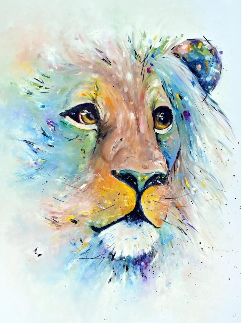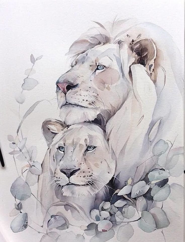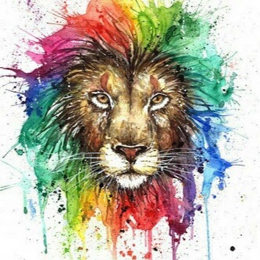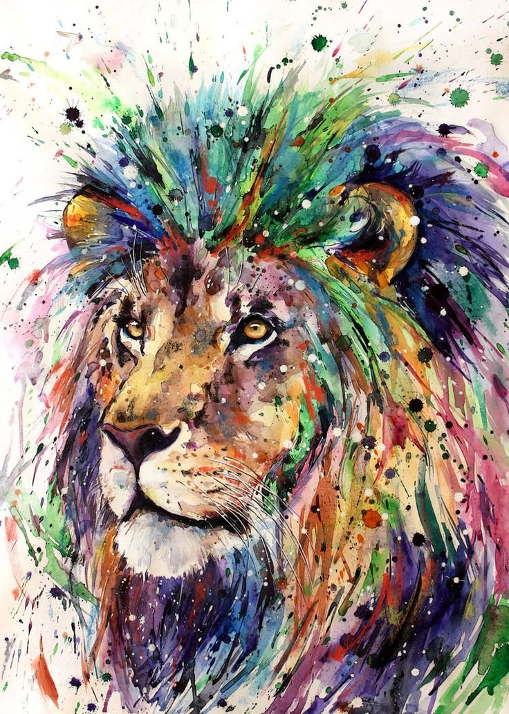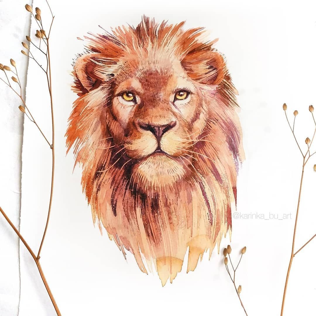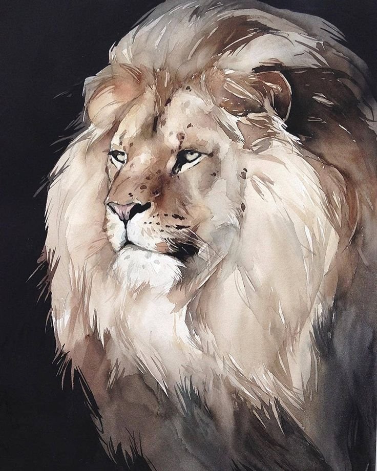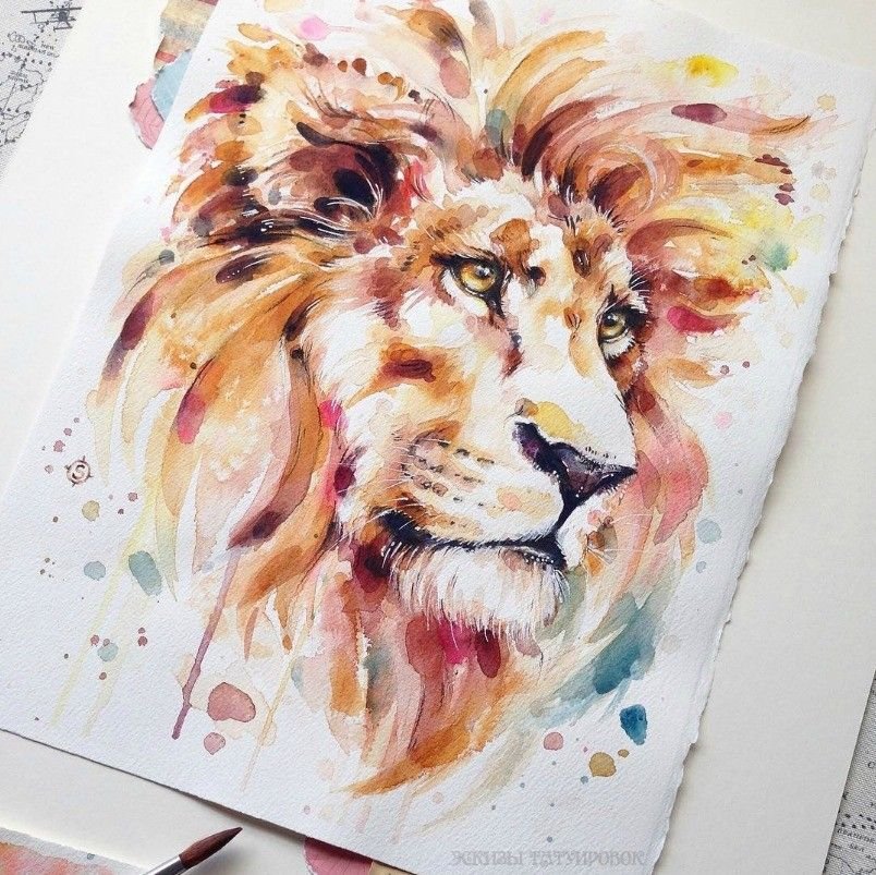 ![Лев картина акварель]()