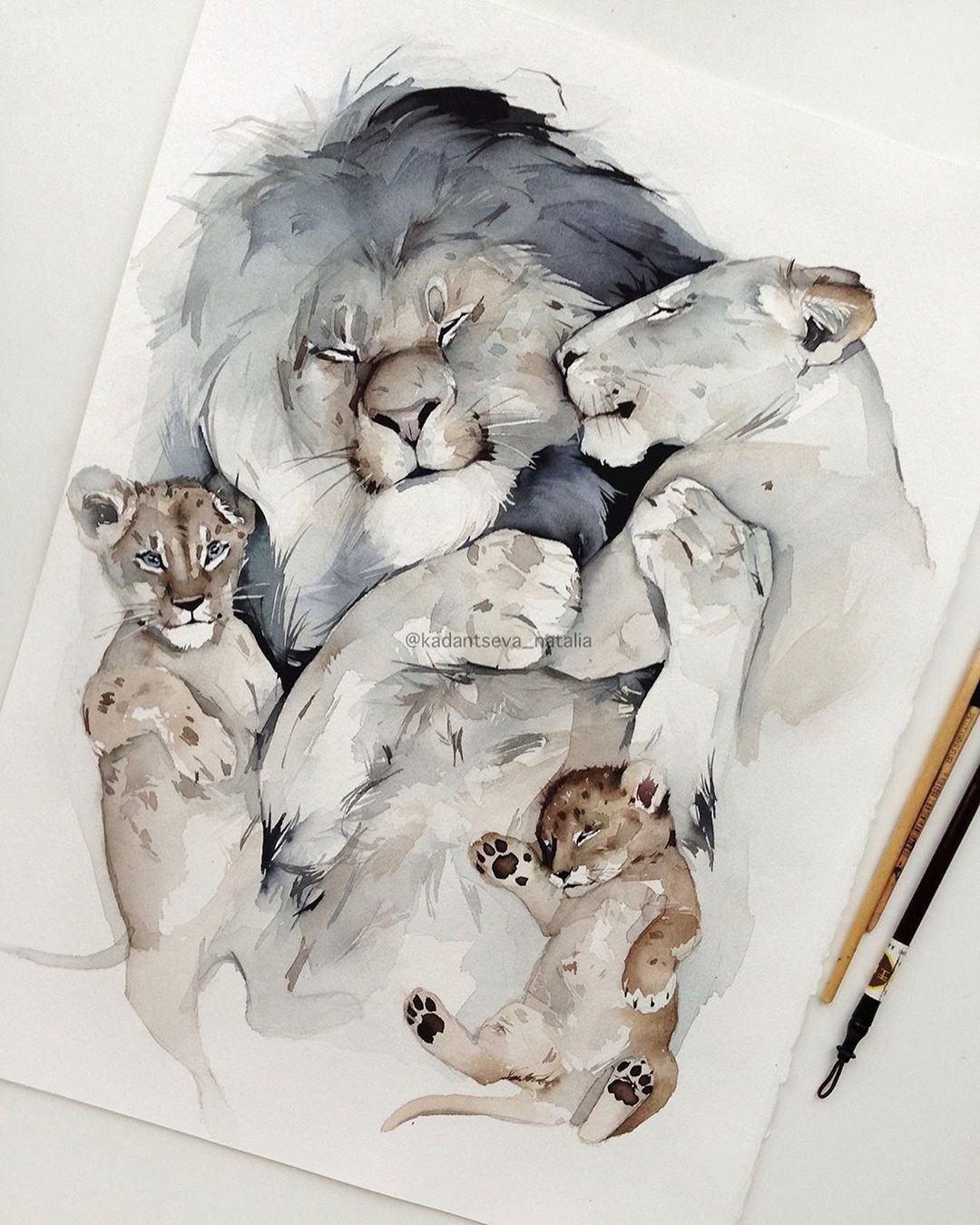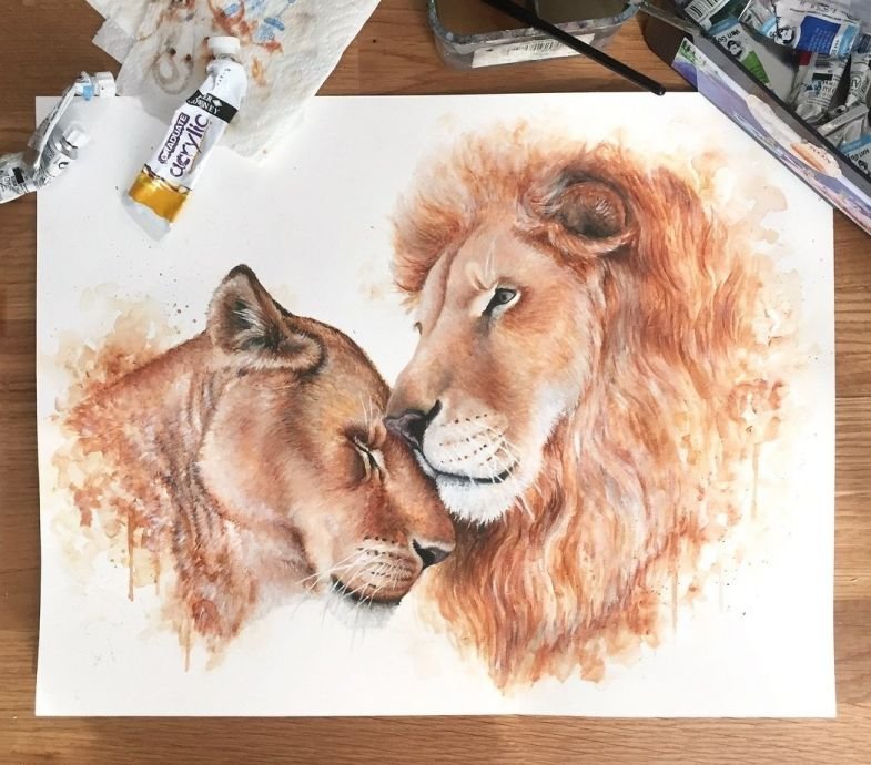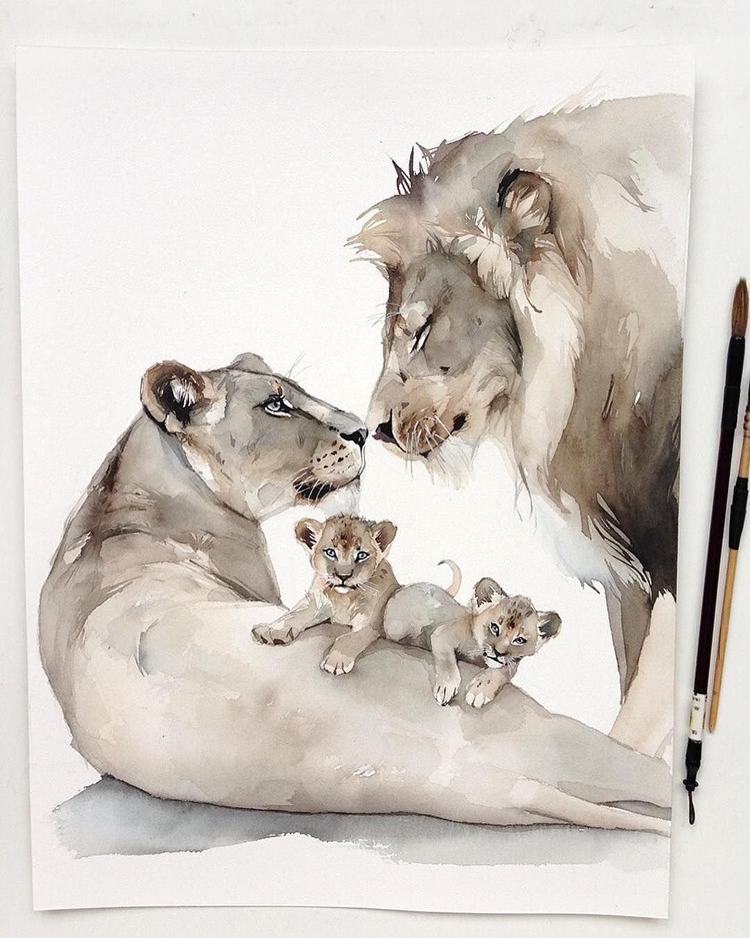 ![Львица акварель]()