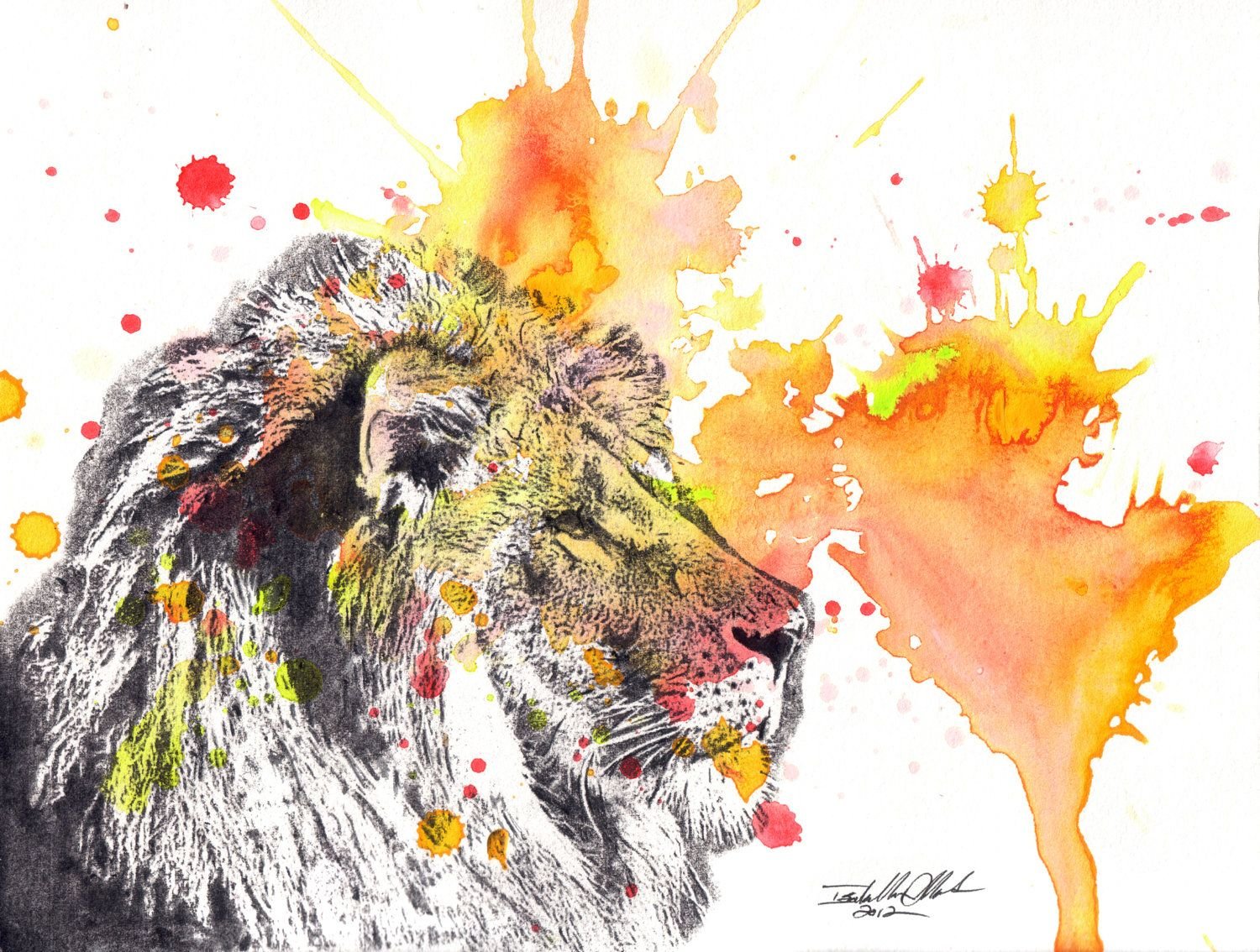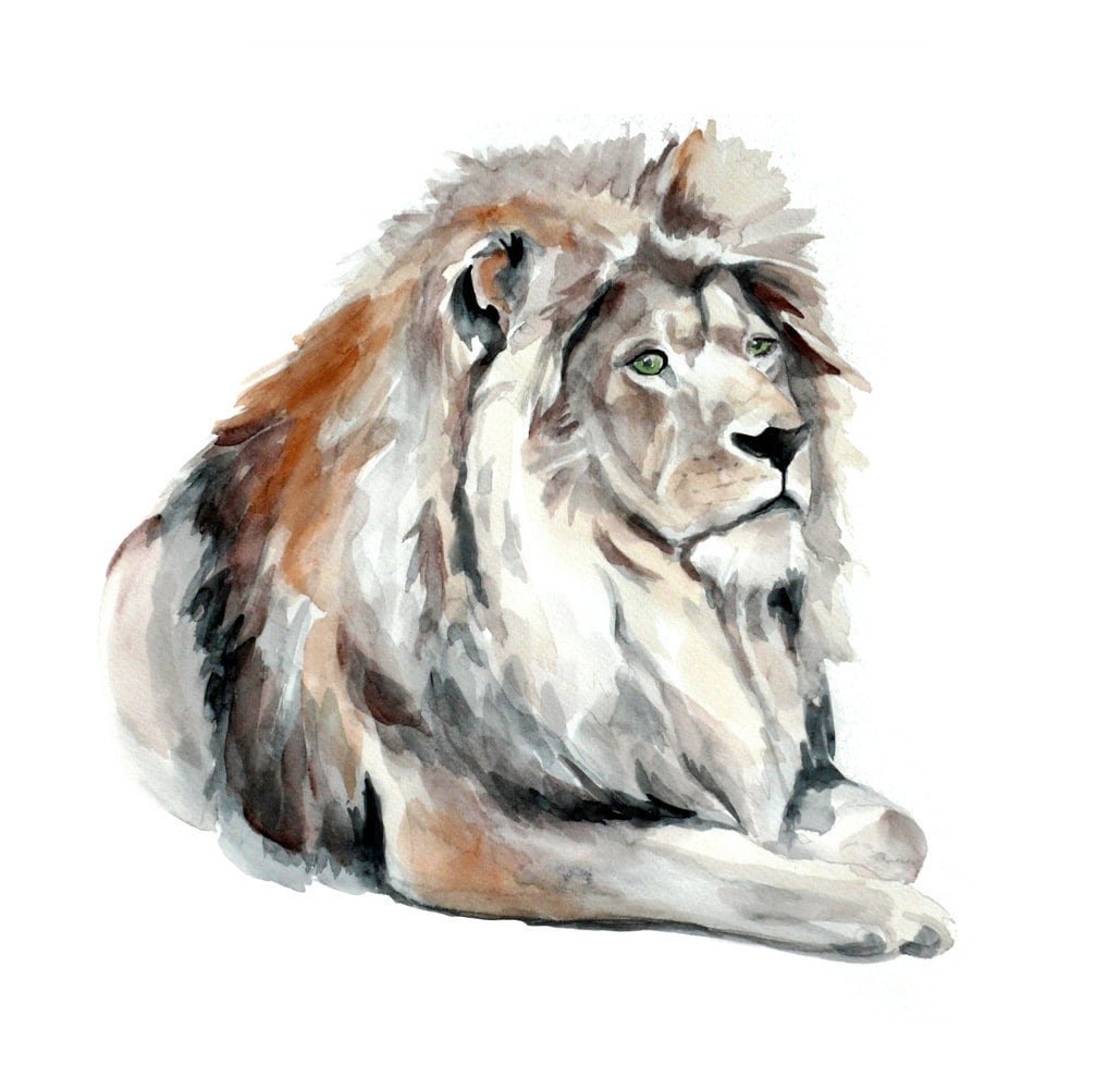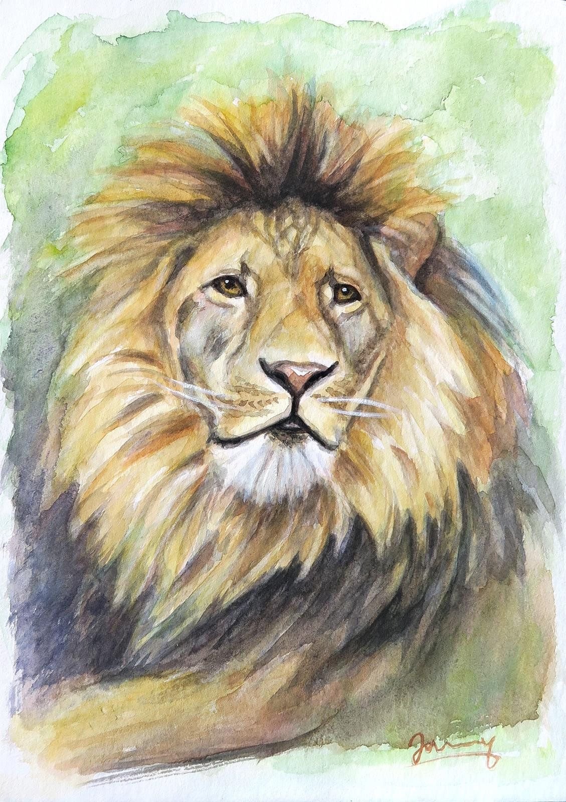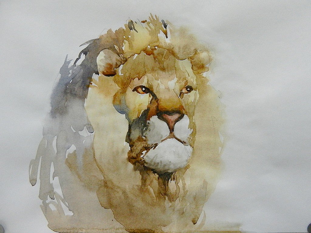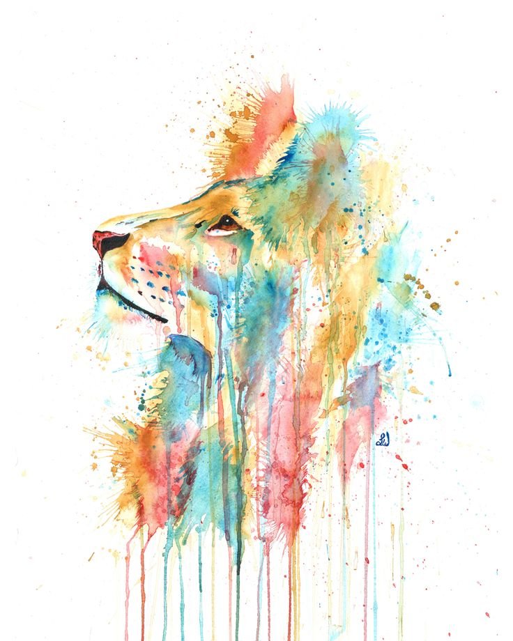 ![Лев акварель]()