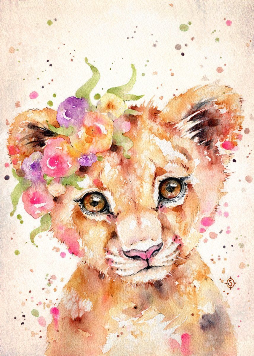 ![Львенок акварель]()