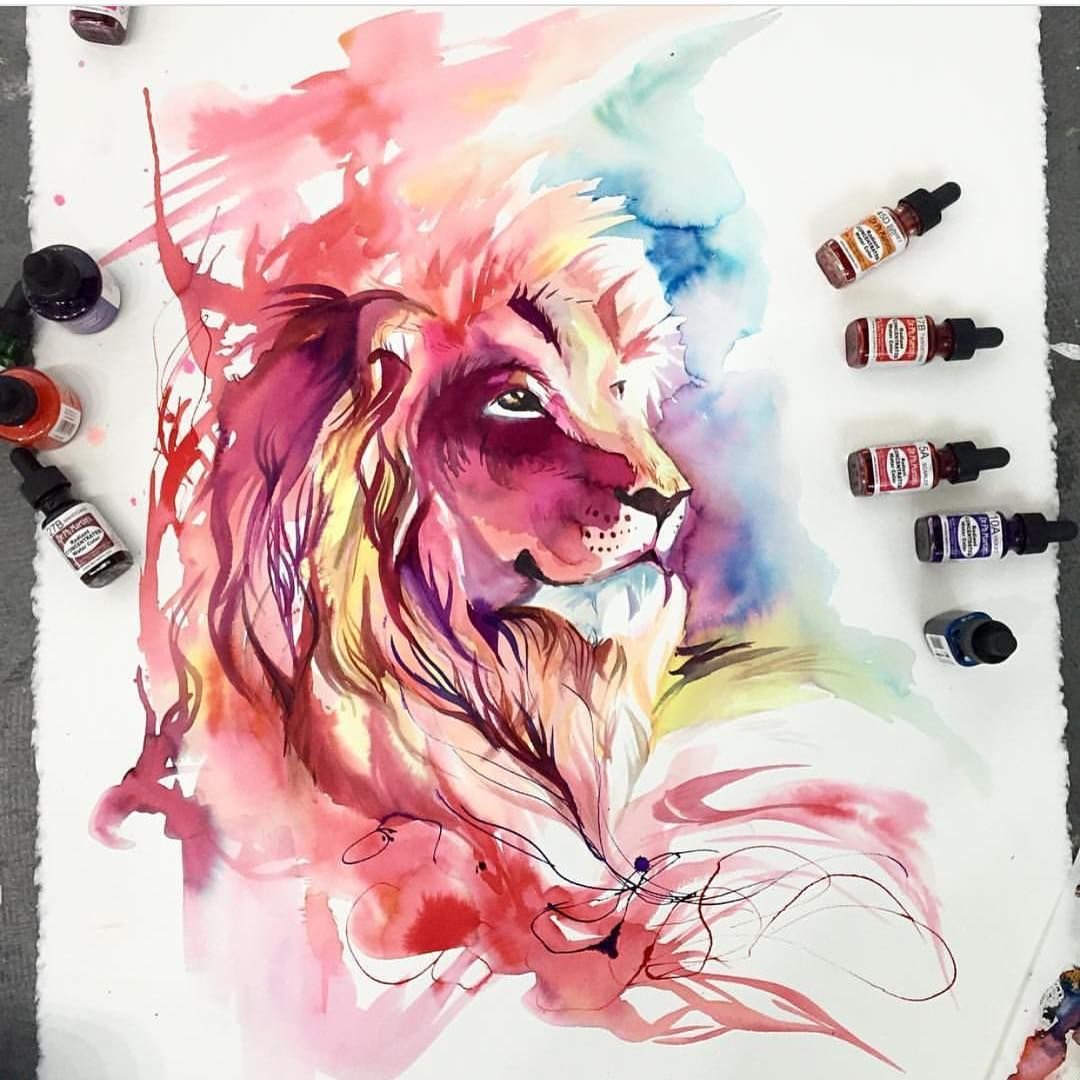![Тату Лев акварель]()