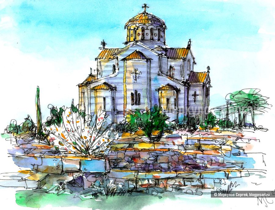 Художник Сергей Меркулов Севастополь скетчи акварель