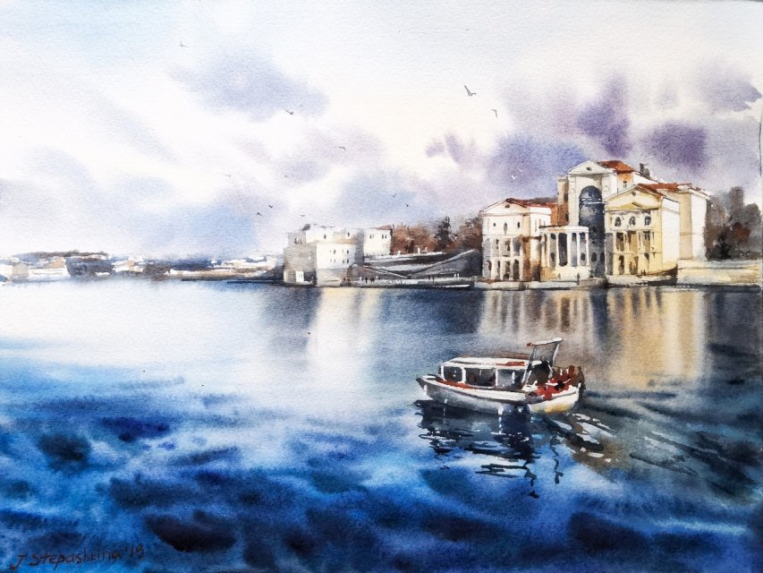 ![Художник Сергей Меркулов Севастополь скетчи акварель]()