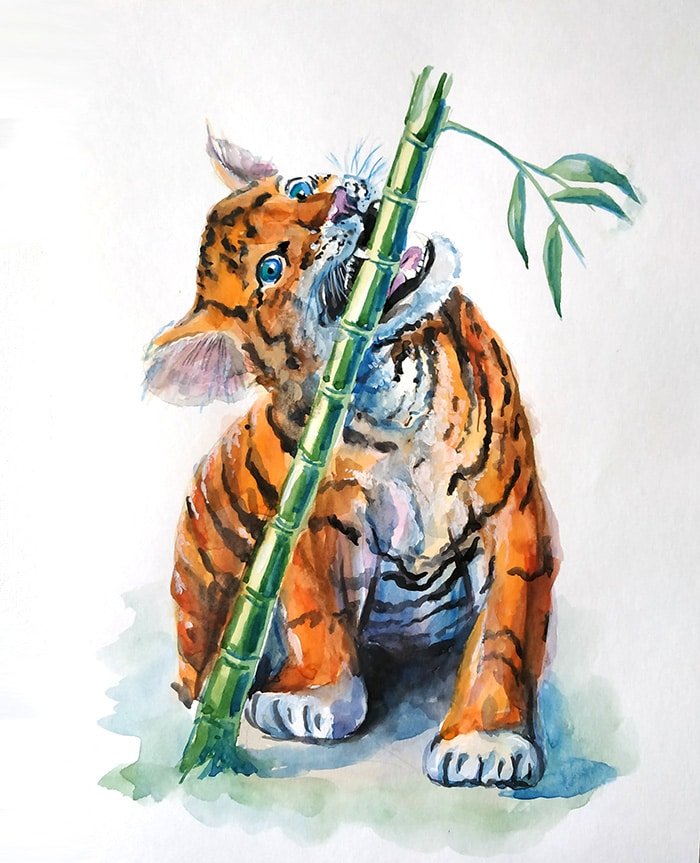 Тигренок акварелью - это прекрасное произведение искусства, которое захватывает взгляд своей нежностью и красотой. Рисунок выполнен с помощью акварельных красок, которые придают ему особую мягкость и живость. Великолепная детализация и тонкие переходы оттенков создают ощущение реальности и природной красоты тигренка. Каждая черта его лица, каждый взгляд и лапа наполнены эмоциональностью и живостью. Тигренок акварелью - это настоящий шедевр, который позволяет зрителю окунуться в мир дикой природы и прикоснуться к ее величию.