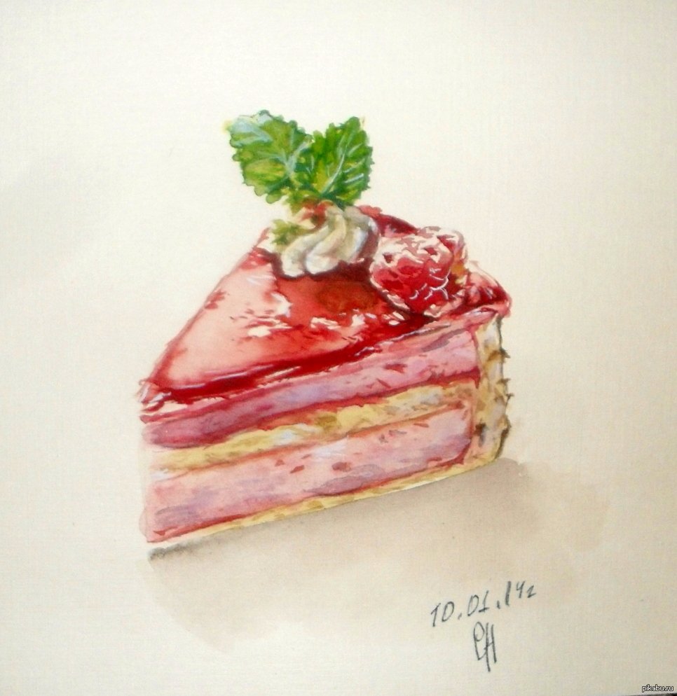 Нарисовать пирожное акварелью