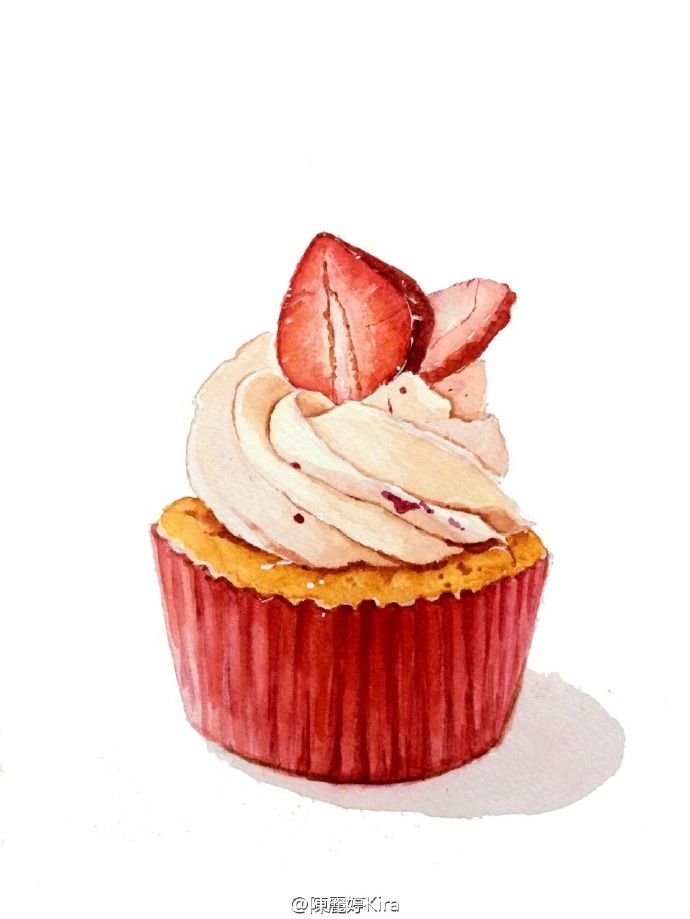 ![Капкейк с клубникой акварель]()
