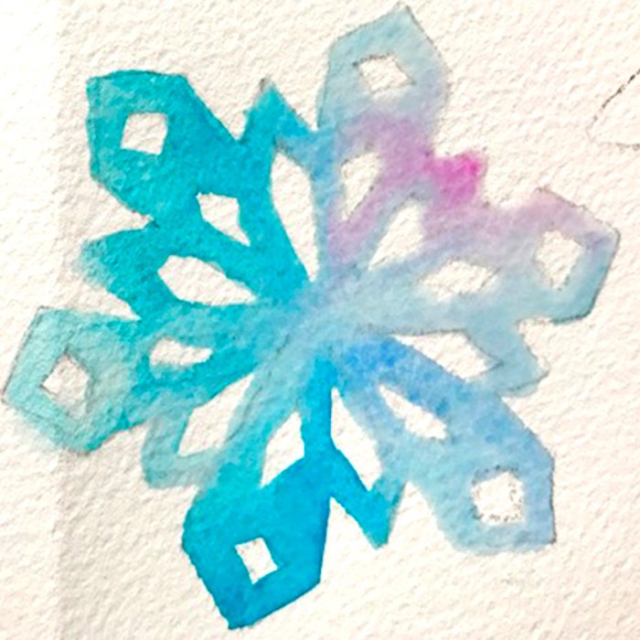 Снежинка акварелью рисование