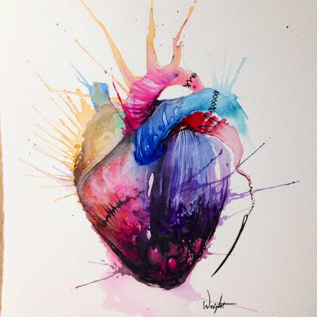 Человеческое сердце акварелью