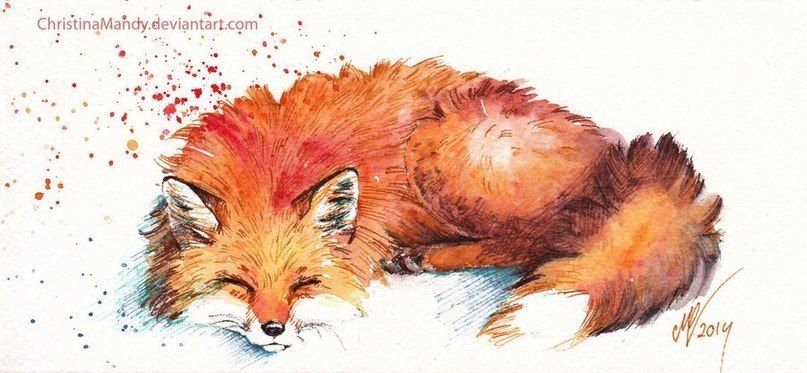 ![Лисичка спит акварель]()