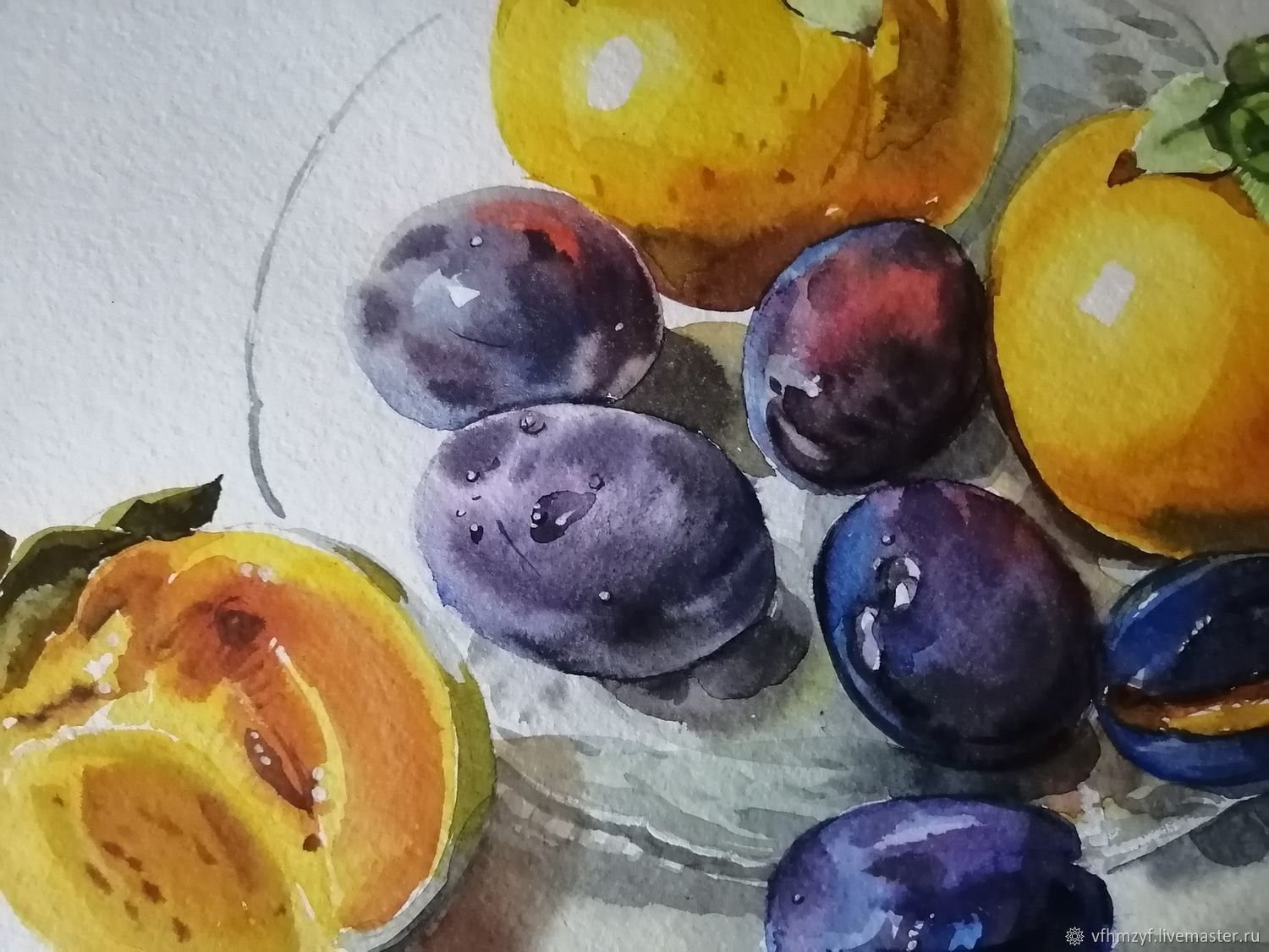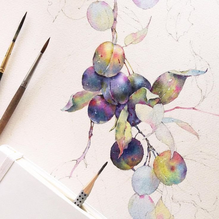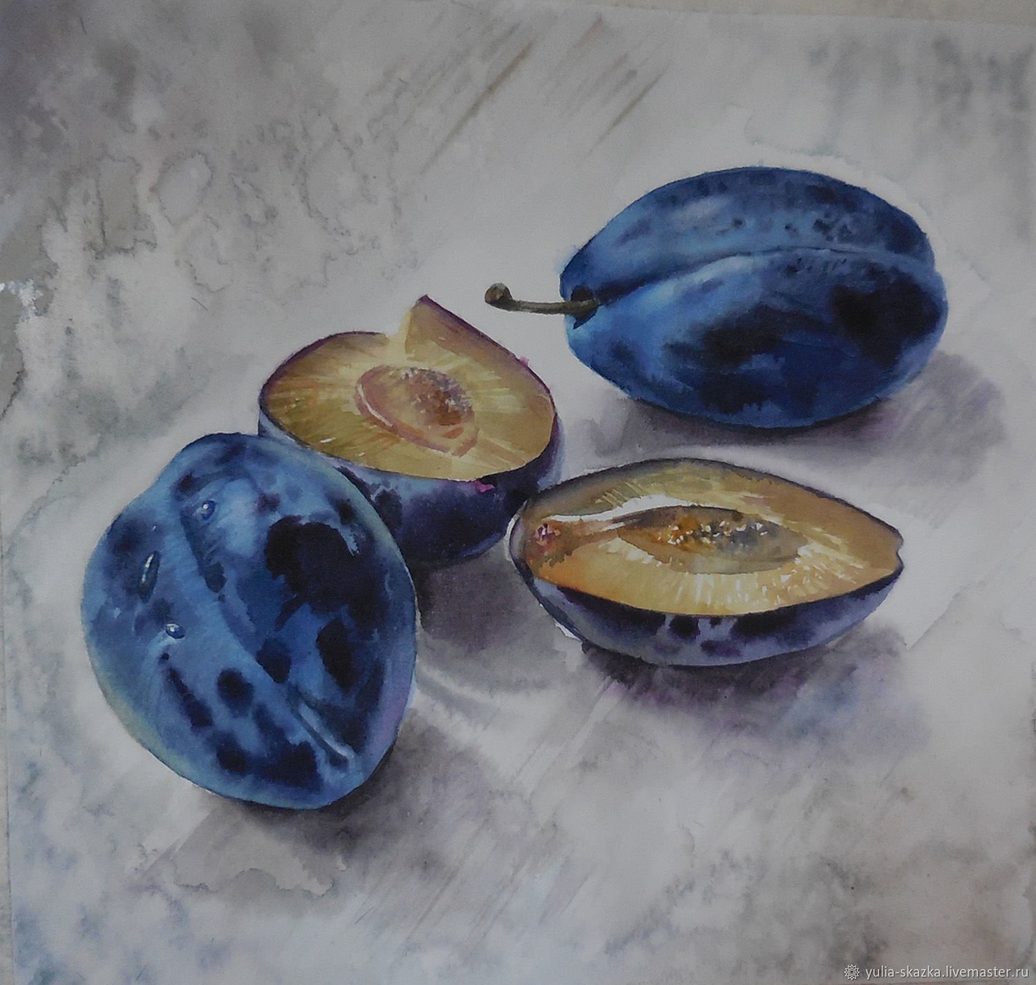 Картина сливы, выполненная акварелью, представляет собой изображение этого плода природного цвета и формы. В основе работы лежит техника акварели, которая позволяет создавать нежные и прозрачные переходы от одного оттенка к другому, воссоздавая естественный вид сливы. Цветовая гамма может варьироваться от ярких сиреневых и фиолетовых оттенков до более бледных и нежных, таких как розовый или персиковый. Такое изображение сливы акварелью привносит ощущение свежести и натуральности, демонстрируя мастерство художника и передавая эмоциональную глубину сцены. Будь то на холсте или бумаге, этот рисунок станет прекрасным элементом декора для интерьера или подарком для любителей искусства и природы.