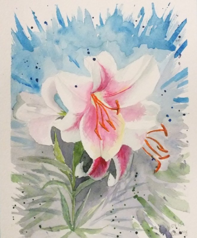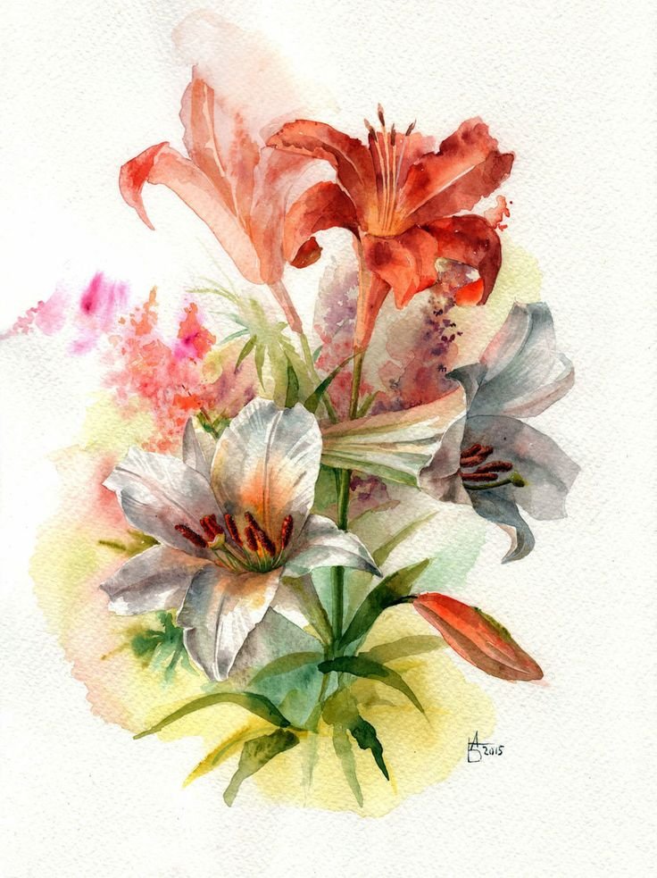 Вашему вниманию представляется уникальный рисунок акварелью, на котором изображена прекрасная лилия - символ изящества и чистоты. Использование акварели при создании этого произведения искусства придает ему особую нежность и плавность, раскрывая всю красоту и магию этого цветка. Каждая деталь рисунка тщательно проработана, оттенки и переходы цветов создают ощущение объемности и реалистичности. Этот рисунок станет прекрасным украшением интерьера или подарком для любителей природы и изящных образов. Он способен подарить радость и восхищение каждому, кто наслаждается искусством и красотой мира растений.