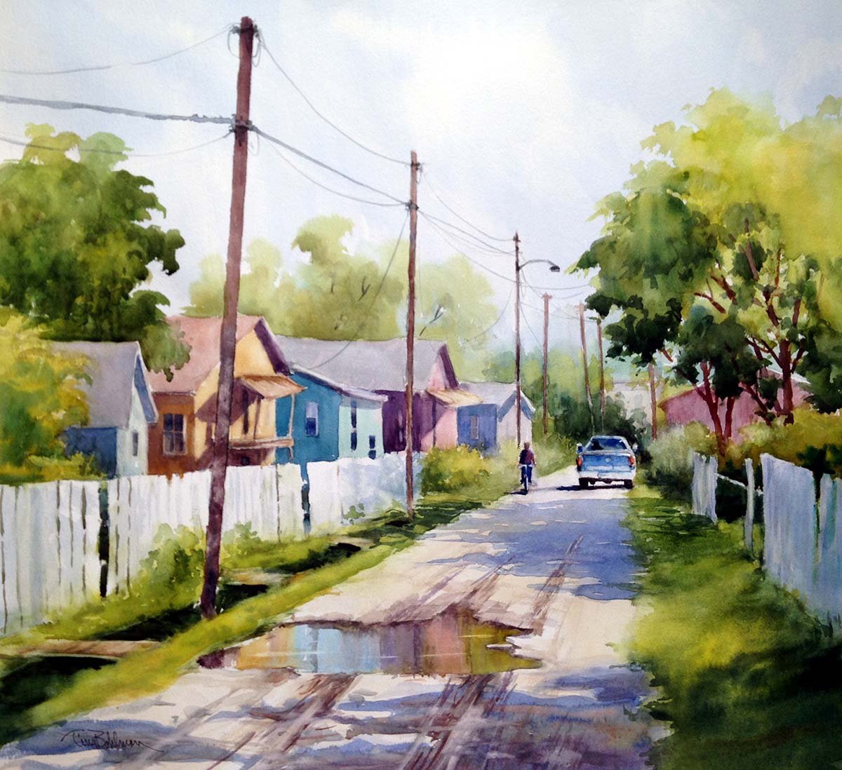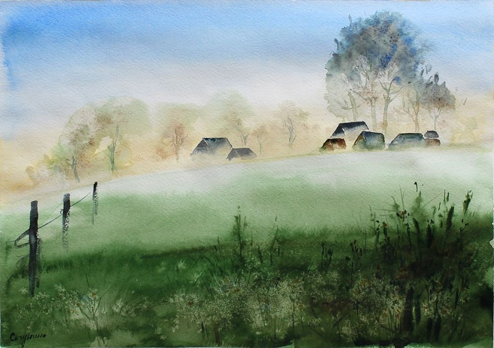 Деревенский пейзаж, изображенный акварелью, передает неповторимую атмосферу жизни за городом. Яркие и сочные краски акварели создают чудесное зрелище: зеленые луга, покрытые мягкой травой, простираются до самого горизонта, а на них расцветают яркие цветы. Вдалеке виднеются раскинутые поля, на которых усердно работают фермеры. Тихо и спокойно веет воздух, наполненный запахом свежего сена. Вдали можно увидеть реку, которая течет под шум плеска воды. Вокруг тянется густой лес, полный разных звуков. Этот деревенский пейзаж, изображенный акварелью, приносит ощущение тишины, спокойствия и мирного сосуществования с природой.