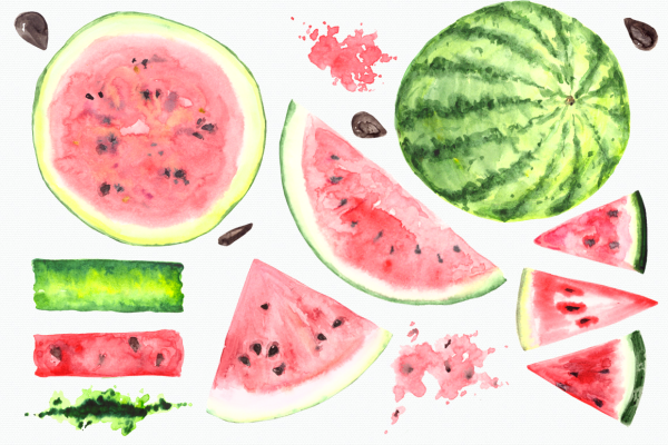 ![Кусок арбуза акварелью]()