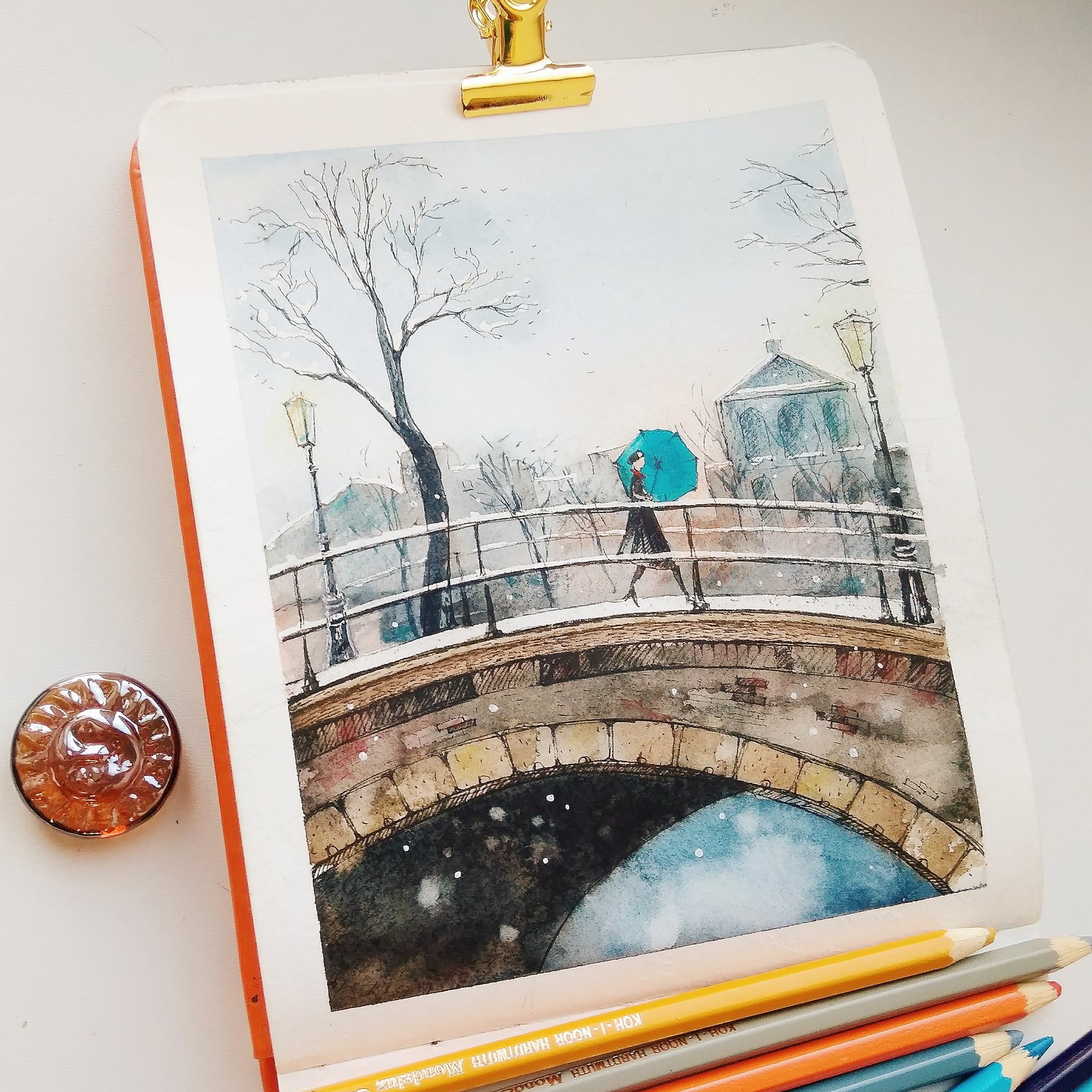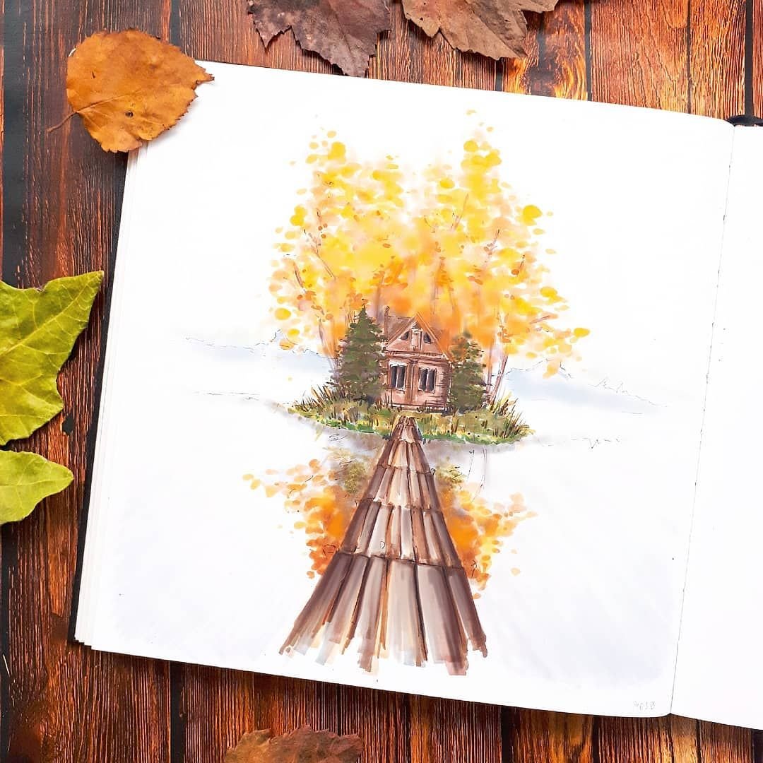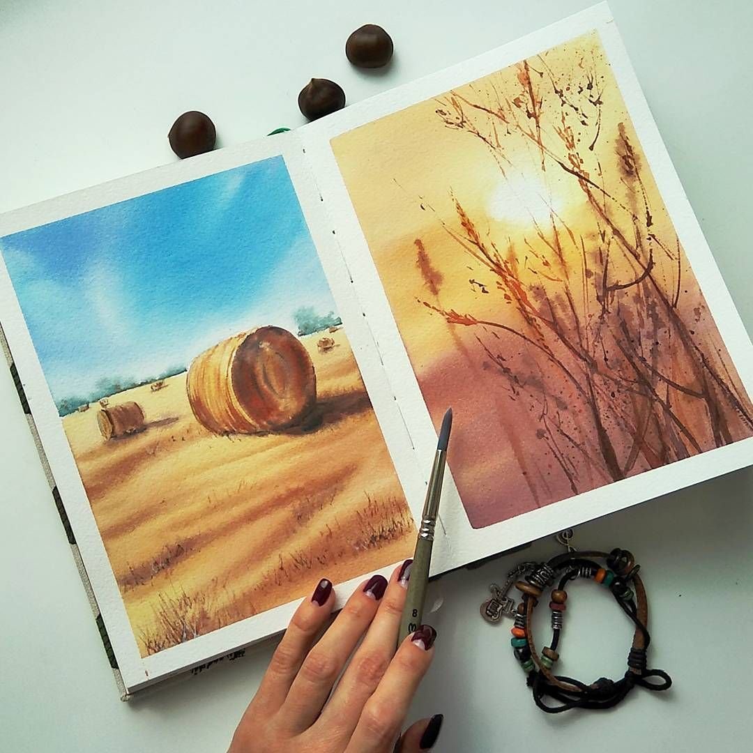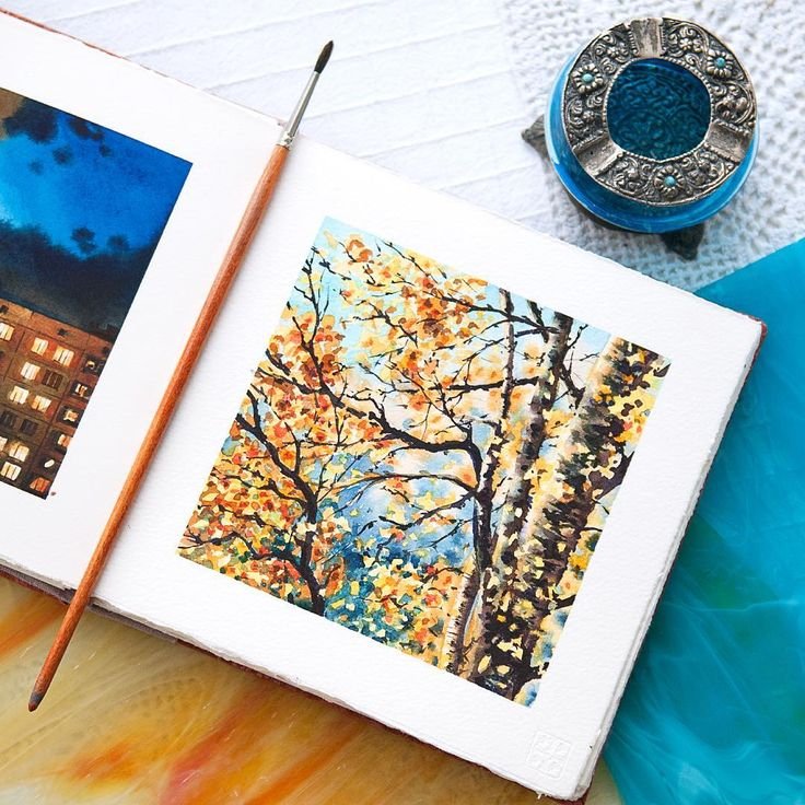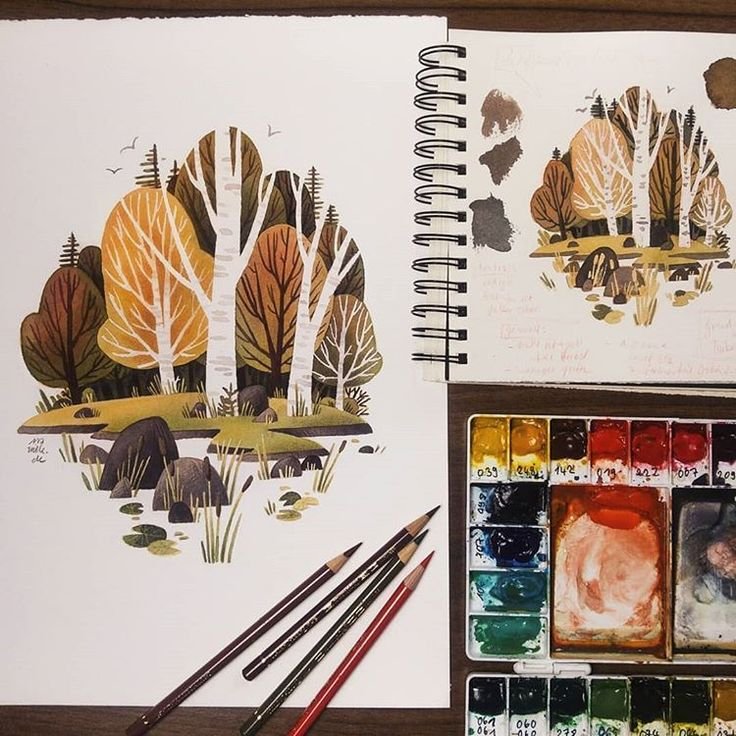 Осенние рисунки акварелью в скетчбуке – это удивительный способ запечатлеть красоту осени и передать ее на бумаге. Акварельные краски позволяют создавать нежные переходы от одного оттенка к другому, воссоздавая яркие осенние цвета: золотисто-оранжевые листья, глубокие краски и теплые оттенки. С помощью акварели можно передать атмосферу осеннего дня, нарисовать пейзаж с падающими листьями или изобразить подробностей осенних предметов, таких как тыквы или грибы. Рисование акварелью в скетчбуке позволяет быть творческим и экспериментировать с разными техниками, создавая уникальные и живописные осенние иллюстрации.