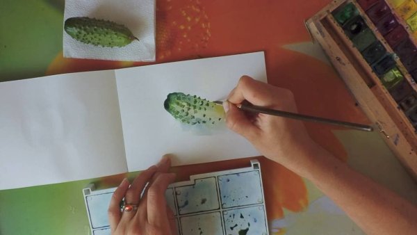 Рисование огурца красками